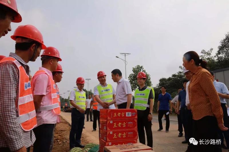 受省委常委、市委書(shū)記胡衡華,市委副書(shū)記、市長(zhǎng)、湖南湘江新區(qū)黨工委書(shū)記胡忠雄委托,市委常委、秘書(shū)長(zhǎng)、常務(wù)副市長(zhǎng)夏建平,副市長(zhǎng)廖建華一行來(lái)到洞株公路快速化改造項(xiàng)目現(xiàn)場(chǎng),帶著西瓜、解暑藥品等物資,為“融城”建設(shè)一線的工作者送上感謝和問(wèn)候。