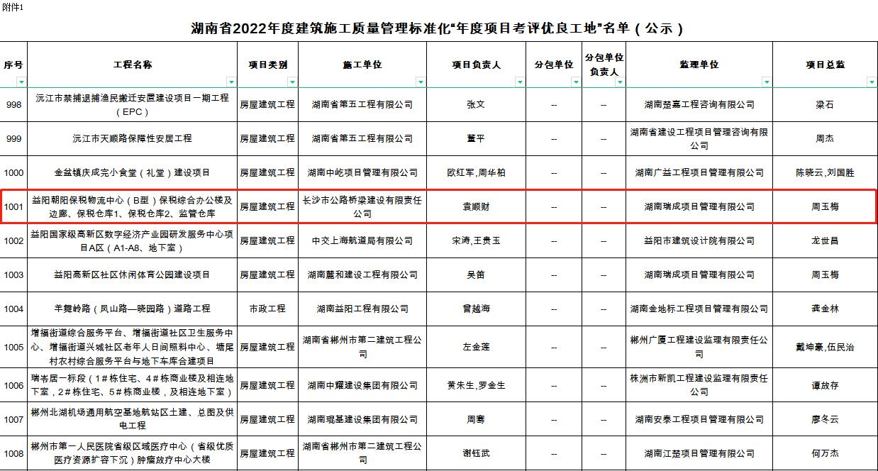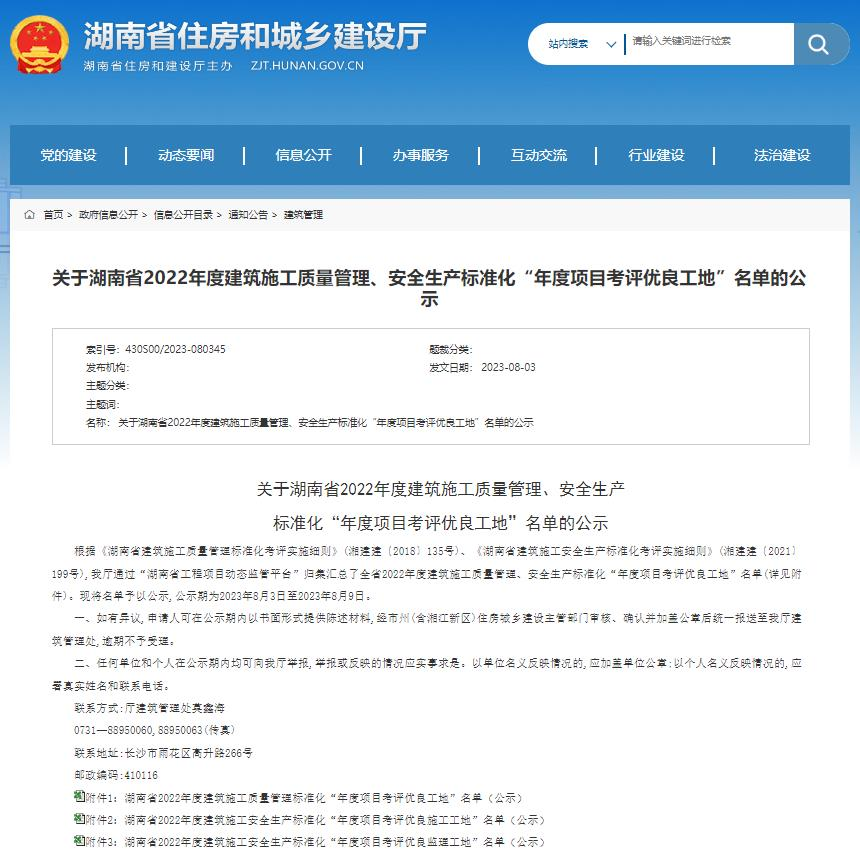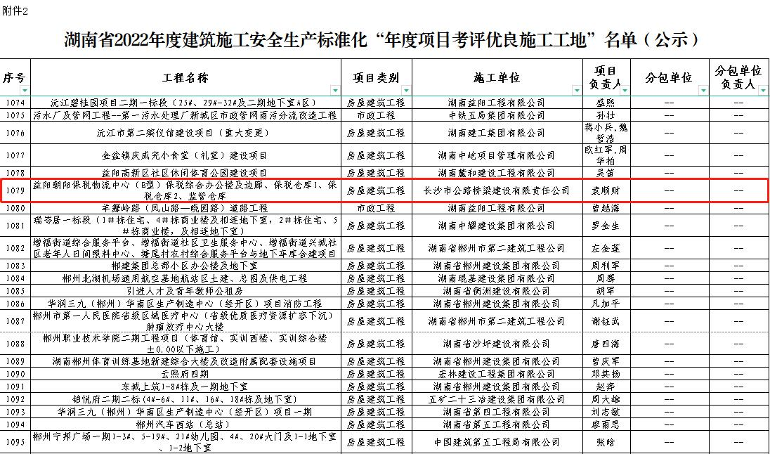 益陽(yáng)朝陽(yáng)保稅物流中心建設(shè)項(xiàng)目榮獲 湖南省2022年度建筑施工質(zhì)量管理、安全生產(chǎn)標(biāo)準(zhǔn)化 “年度項(xiàng)目考評(píng)優(yōu)良工地”