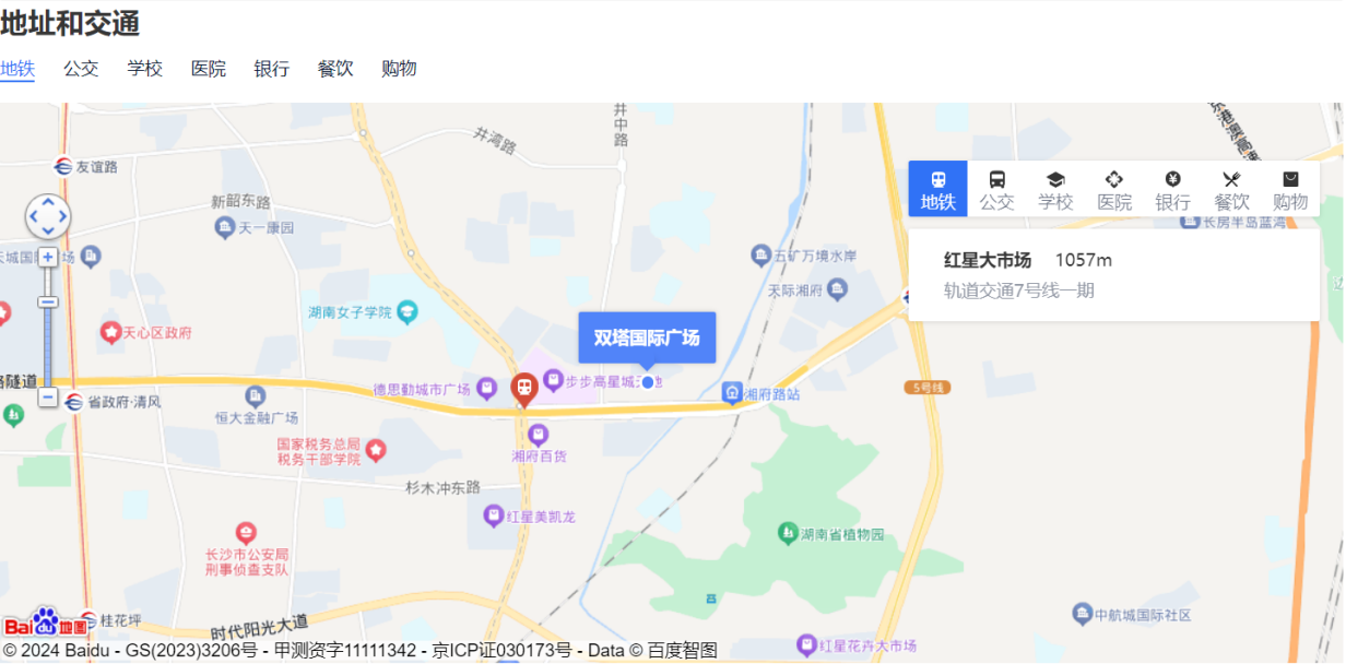1.地址:雨花區(qū)湘府東路二段258號雙塔國際廣場。